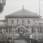 На старинной фотографии запечатлён первый железнодорожный вокзал Хабаровска — символ стремительного развития города в конце XIX века. Деревянное здание, построенное к запуску Уссурийской железной дороги (1897 г.), воплощало дух эпохи: лаконичный, но выразительный облик с резными украшениями, просторные залы ожидания.