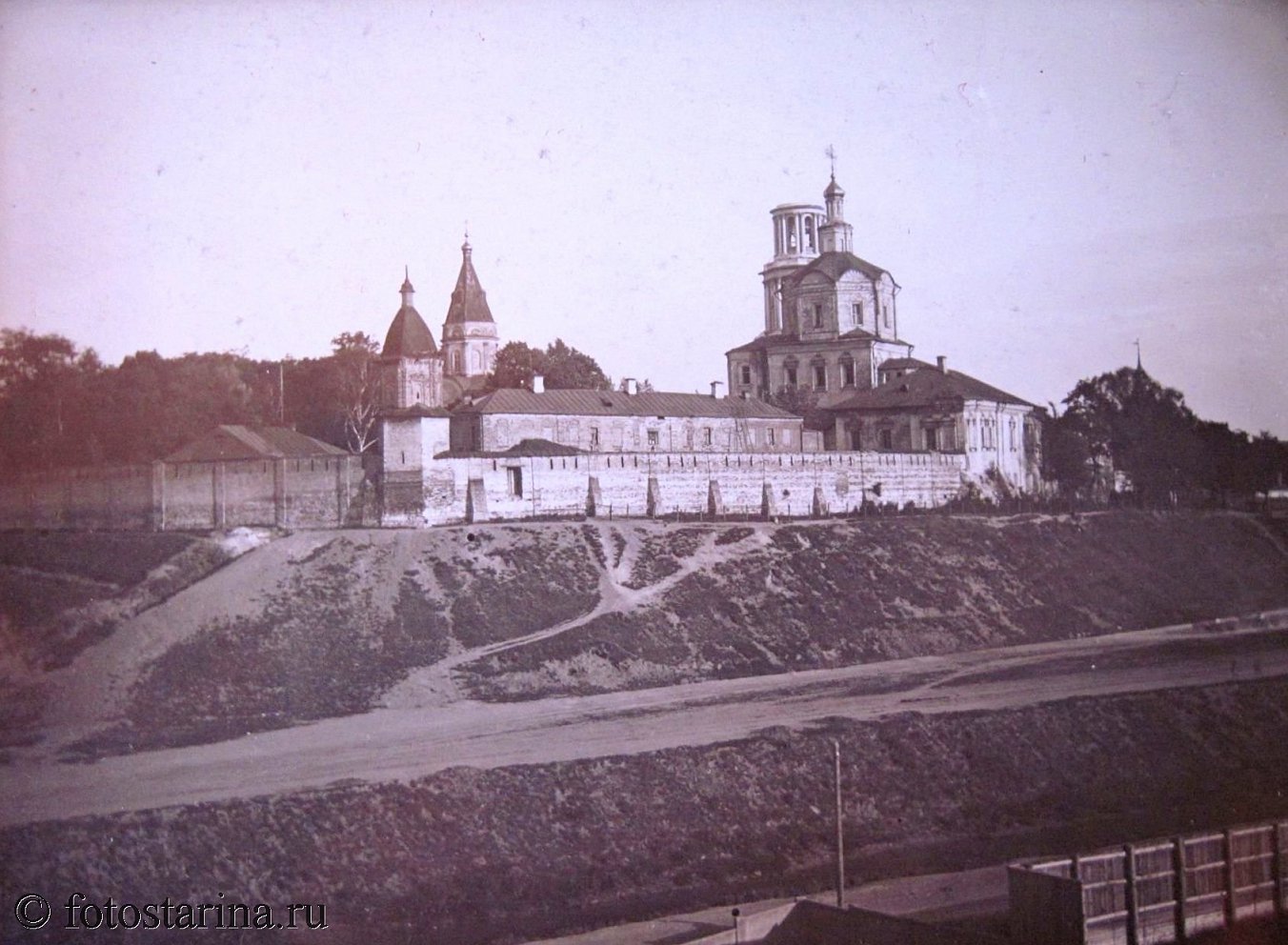 На старинной фотографии запечатлён Андроников монастырь — величественный, но уже утративший своё духовное предназначение. В 1920–1930-е годы облик монастыря разительно отличался от его средневековой славы: вместо монашеской тишины — шумная жизнь «мирских» учреждений.