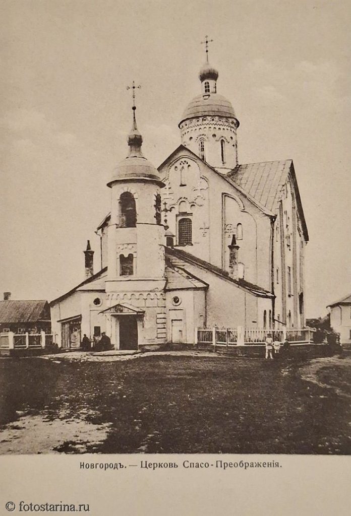 В дореволюционные годы Спасо-Преображенская церковь была не только религиозным, но и культурным центром. Здесь хранились древние иконы, проводились важные богослужения, собирались жители окрестных слобод. Окружающая церковь территория выглядела просто: земляная дорога, невысокий забор, несколько скромных построек — типичный городской пейзаж Новгорода того времени.
