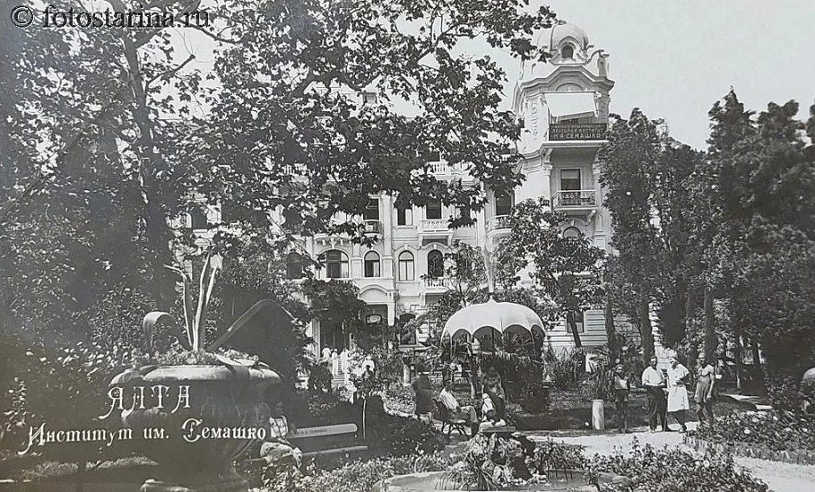 Перед нами — старинная фотография, запечатлевшая здание Института им. Н. А. Семашко в Ялте в 1930-е годы.