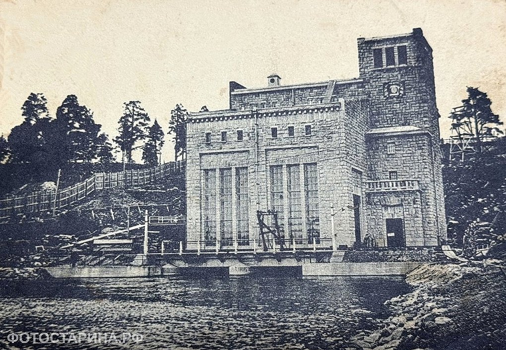 Перед вами — старинная фотография Кондопожской гидроэлектростанции, запечатлевшая веху в развитии Карелии 1920-х годов. Монументальное здание из карельского камня (габбродиабаза) — не просто инженерный объект, а символ электрификации региона.