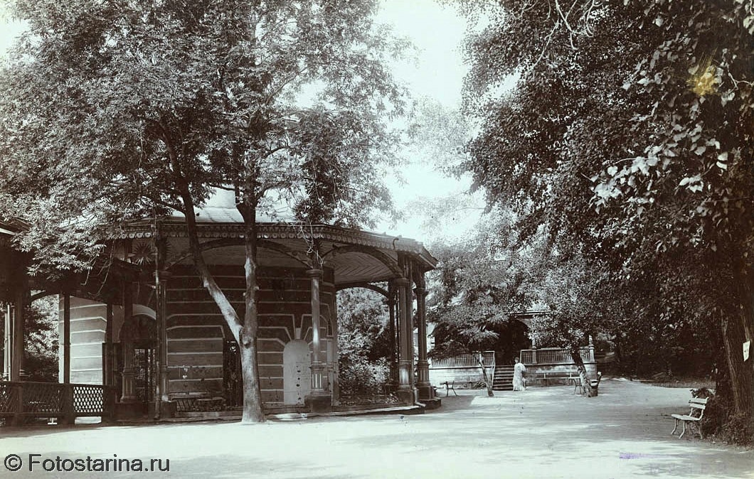 - бювет (строительство начато в 1809 г., архитектор А. Ф. Славинский) — питьевой павильон с бассейном, отделанным известняком;