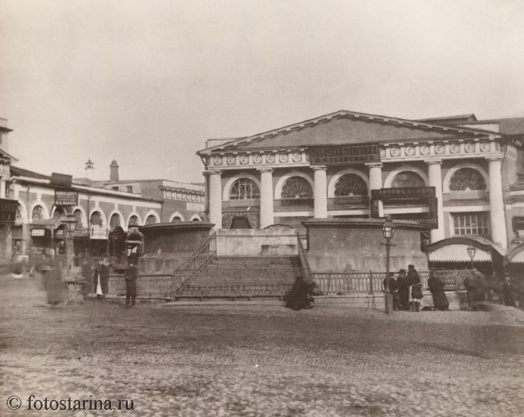 Архитектура здания — с колоннами и арочными окнами — подчёркивала статус места как торгового сердца столицы.