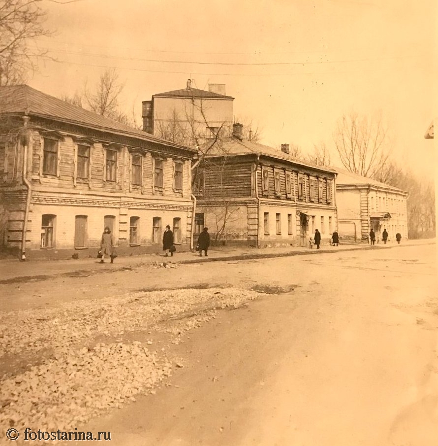 - Деревянные и кирпичные дома — типичная застройка для южных районов Москвы того времени. Двухэтажные дома ещё не демонтированы (их снос активно шёл в 1960–1970-х), соседствуют с более современными постройками.