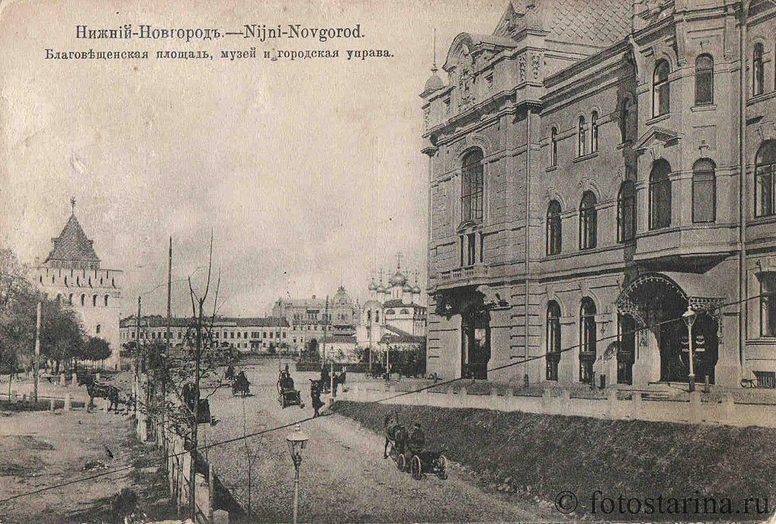 Площадь сформировалась из двух пространств — полукруглой Благовещенской и вытянутой Семинарской. В 1787 году здесь появился комплекс Почтовой конторы (ныне — торговый комплекс «Алексеевский ряд»). В XIX веке площадь славилась каменными зданиями, вызывавшими восхищение современников.
