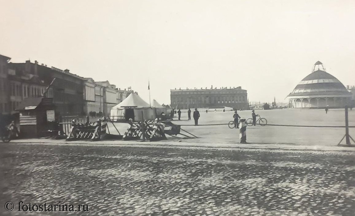 Перед вами — старинная фотография Марсова поля в Санкт-Петербурге, одного из знаковых мест города начала ХХ века. На снимке можно увидеть временный павильон панорамы «Оборона Севастополя», который стал одним из ярких событий в жизни столицы. Давайте погрузимся в историю этого места!
