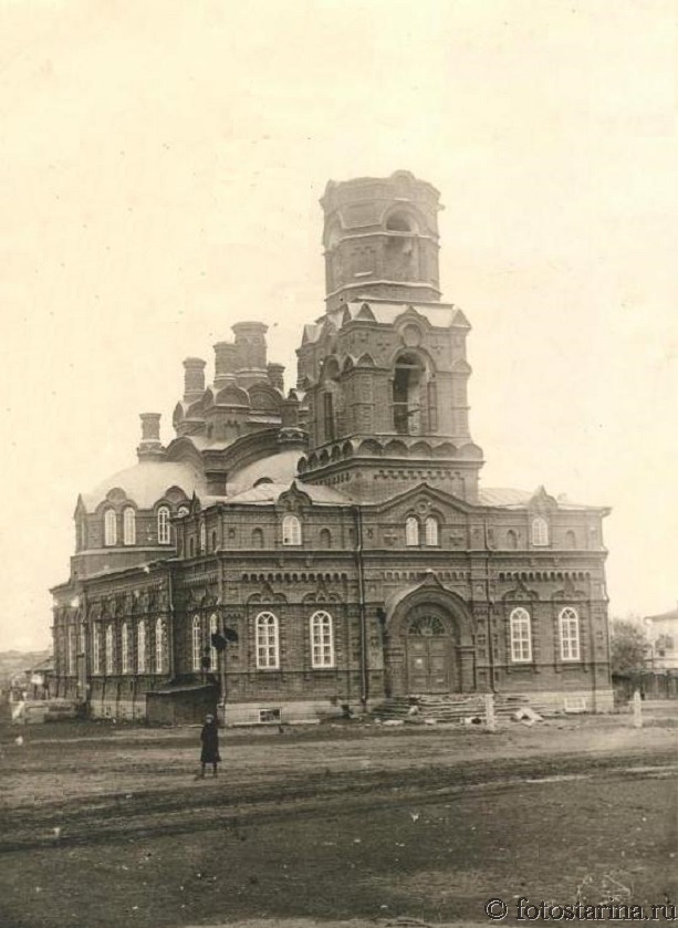 Перед вами — завораживающий снимок, переносящий нас в прошлое, в атмосферу старинной Лысьвы. На фотографии запечатлён величественный храм, возвышающийся над городом, — символ духовности и архитектурного мастерства своего времени. Его купола и колокольня, устремлённые в небо, словно рассказывают нам историю о жизни горожан, их вере и традициях.