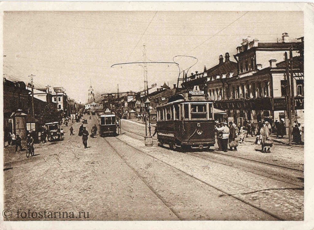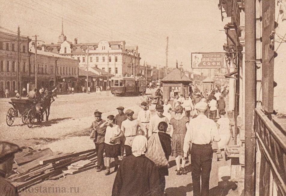 - оживлённые улицы с конными повозками и первыми автомобилями;